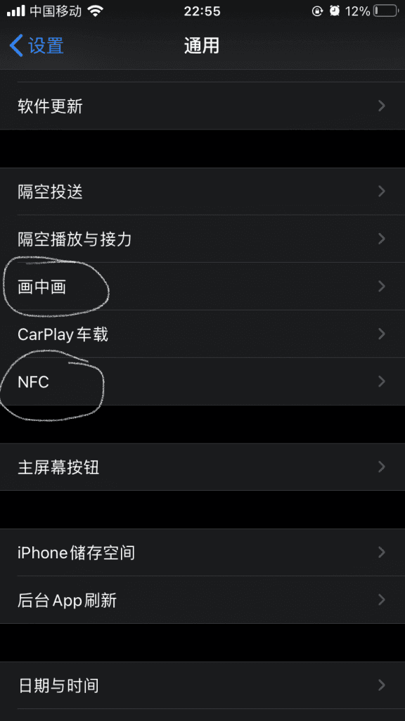 这次终于见到了活久见的NFC开关了,其实从Iphone6以上就有NFC功能,只是苹果一直没给权限,只提供给ApplePay使用。